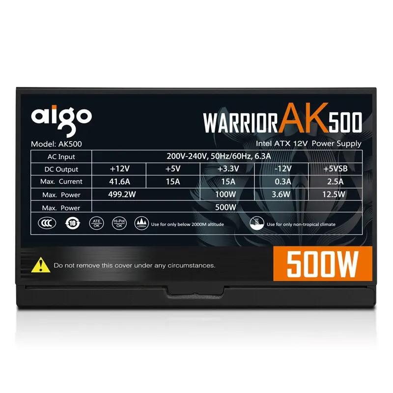 The Aigo AK 500W PC PSU delivers high power output, ensuring your computer runs smoothly and efficiently.