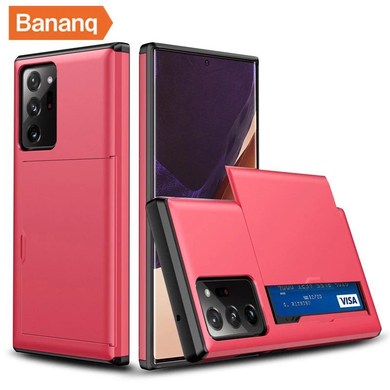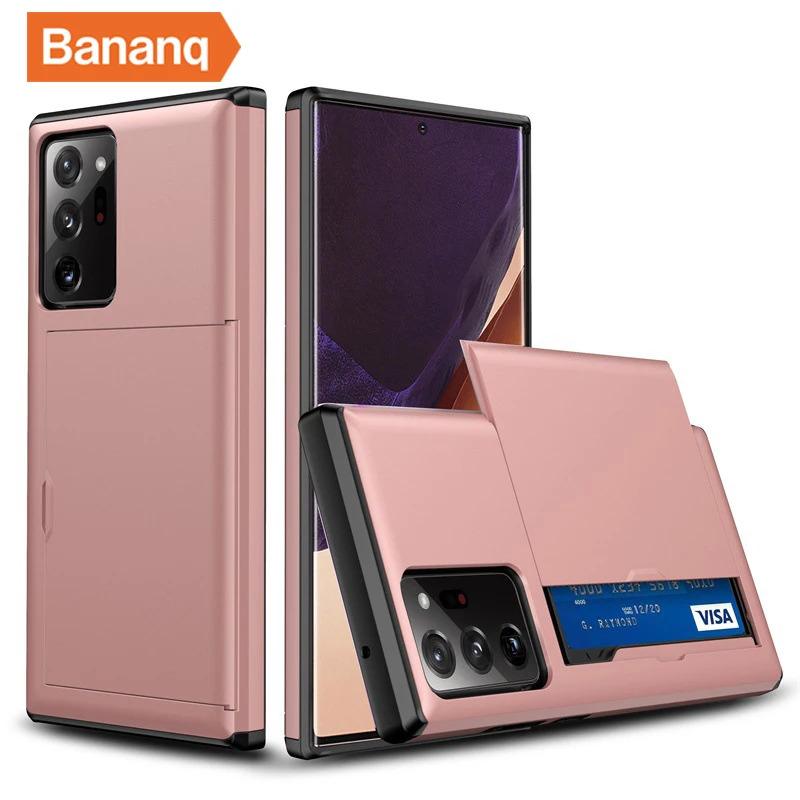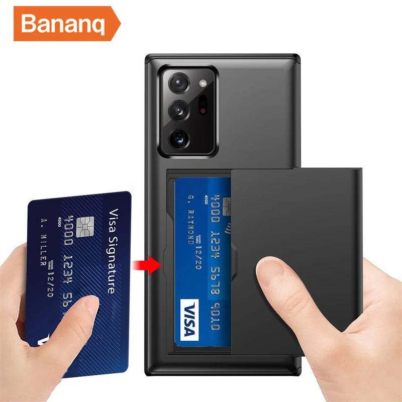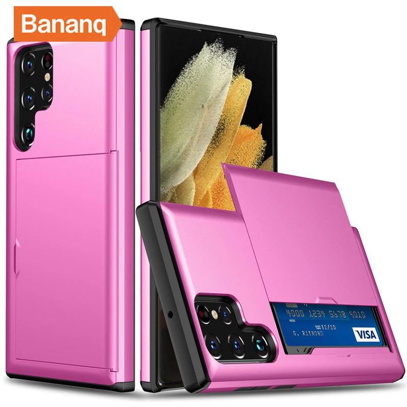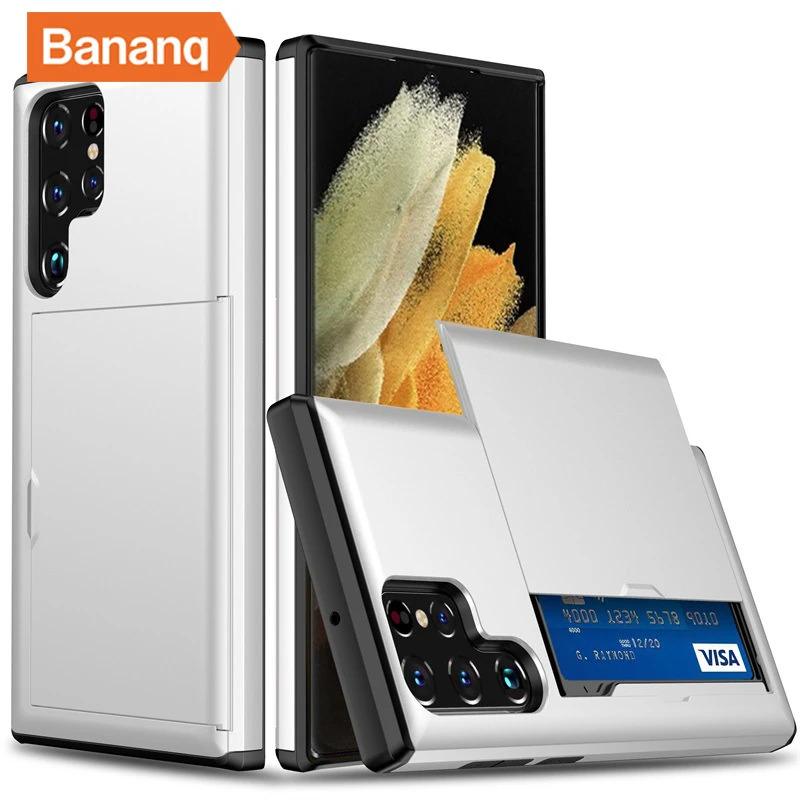 Bananq Slide Card Slot Phone Case For Samsung S25 S24 S23 S22 S21 Ultra Plus FE Shockproof Card Bag Wallet Cover For Galaxy Note 20 10 Plus