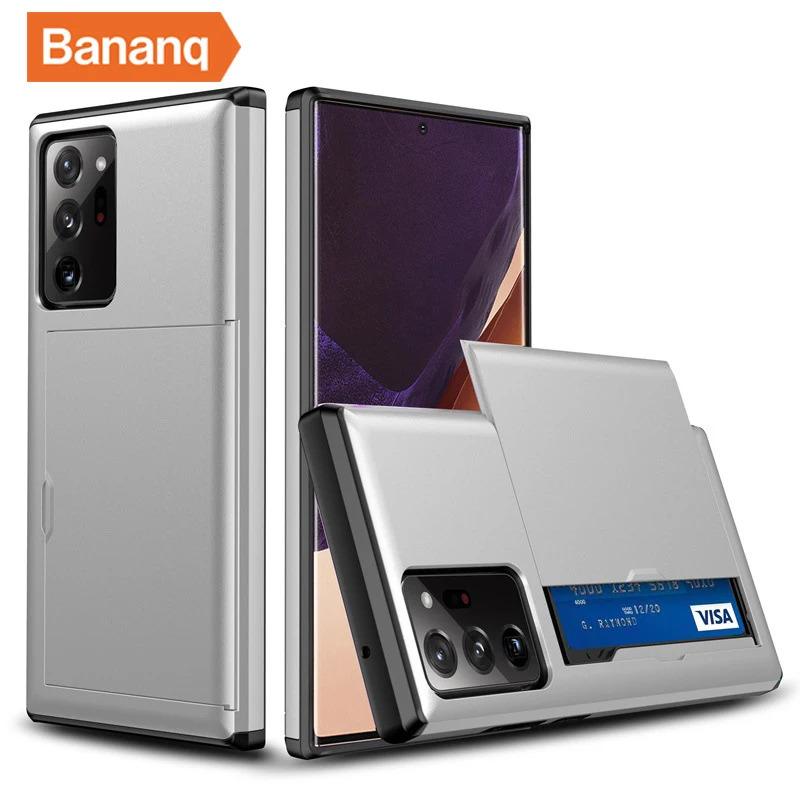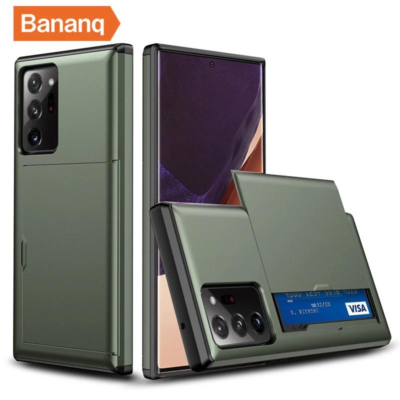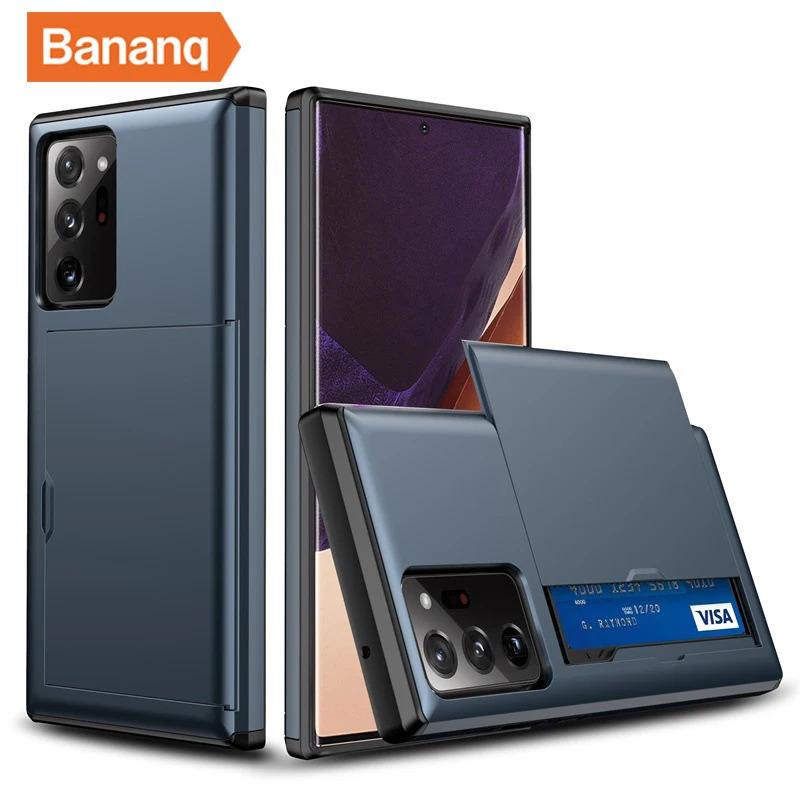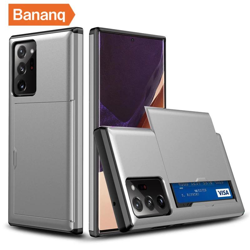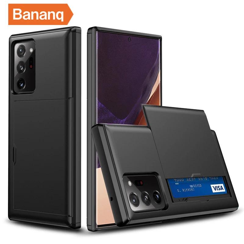 Bananq Slide Card Slot Phone Case For Samsung S25 S24 S23 S22 S21 Ultra Plus FE Shockproof Card Bag Wallet Cover For Galaxy Note 20 10 Plus