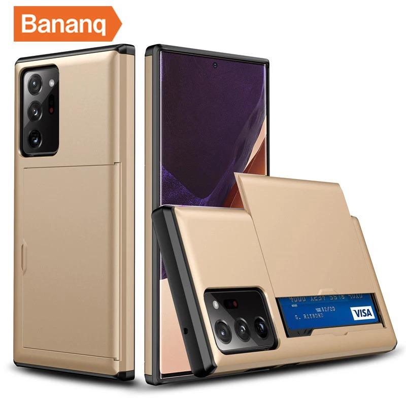 Bananq Slide Card Slot Phone Case for Samsung S25/S24/S23/S22/S21 Ultra Plus FE – Shockproof Wallet Cover for Galaxy Note 20/10 Plus
