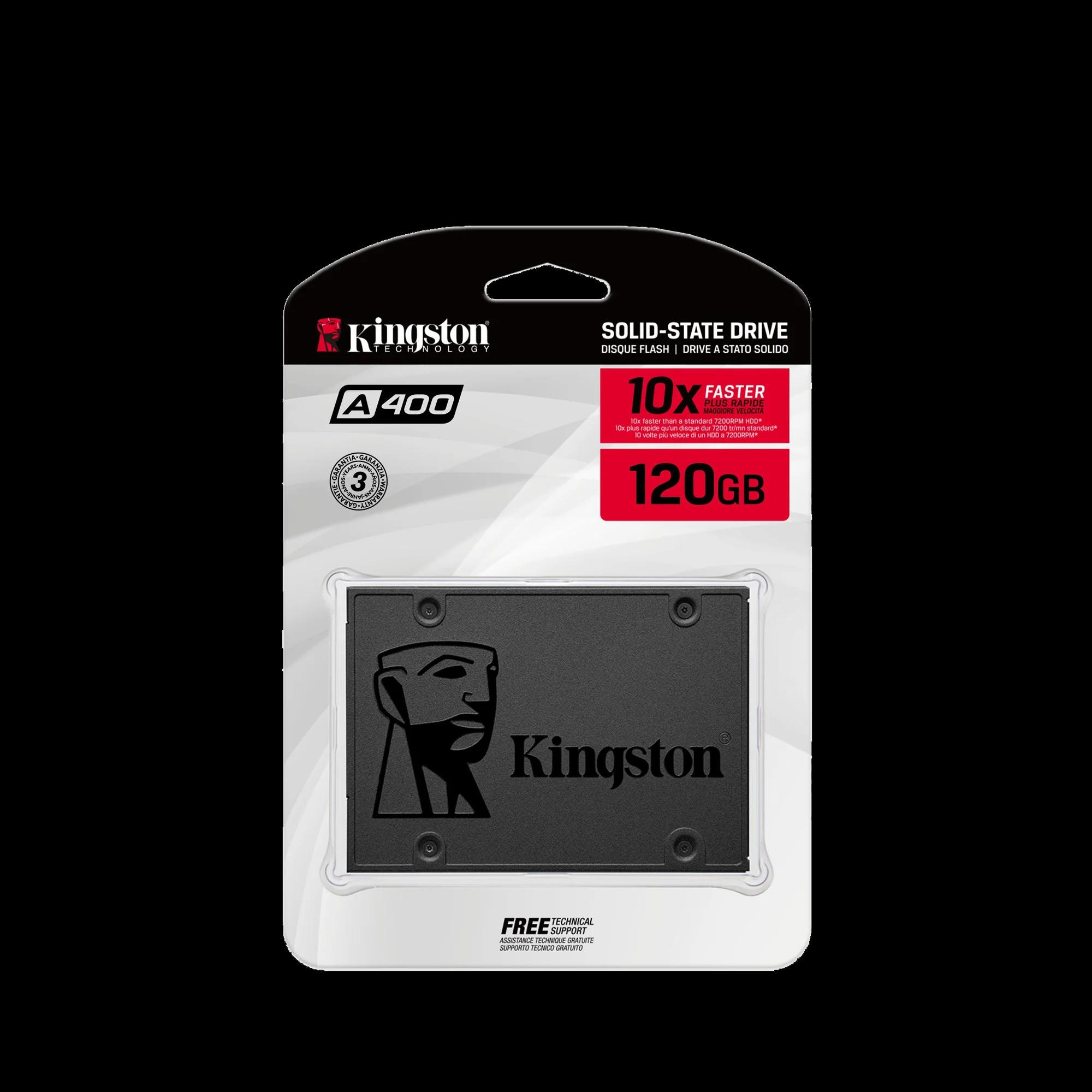 Upgrade your PC with the Kingston A400 SSD, offering high-speed SATA III performance and multiple storage options (960GB, 480GB, 240GB, 120GB) for faster boot times and reliable data storage.