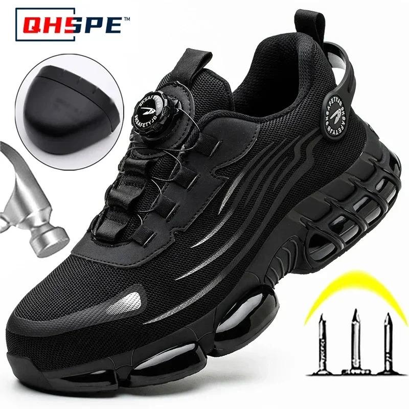 Men’s Work Sneakers with Rotating Lacing Knob – Adjustable, Protective Footwear in Black, Blue & Gray, Sizes 36-46