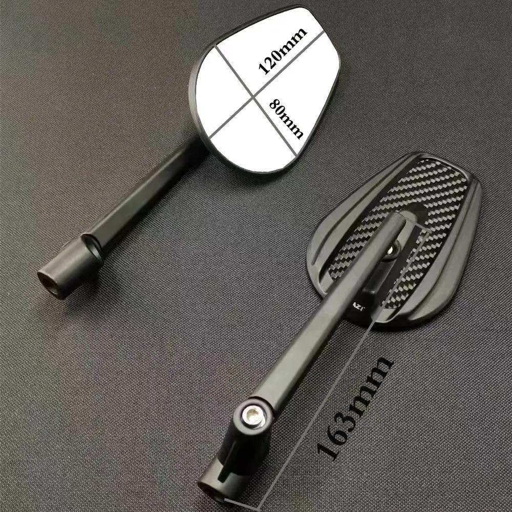 Motorcycle Rear-View Mirrors – 360° Swivel, 120x80mm, Carbon Fiber & Aluminum