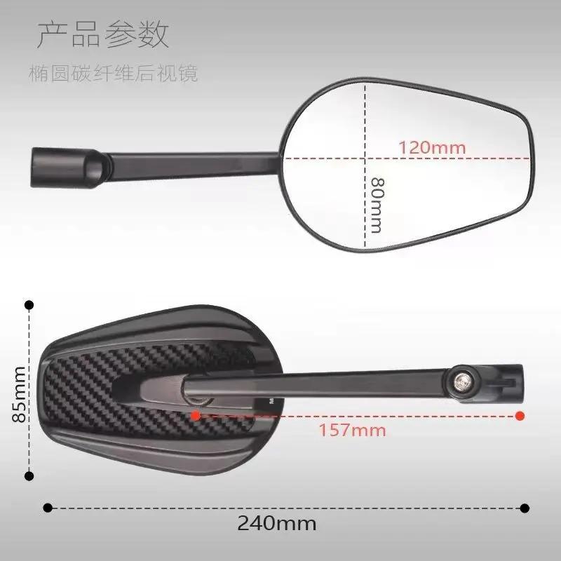 Specification: Motorcycle Rear-View Mirrors – 360° Swivel, 120x80mm, Carbon Fiber & Aluminum