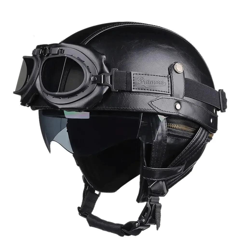 Retro German Style Leather Motorcycle Half Helmet – Vintage Open Face Biker Helmet DOT Certified