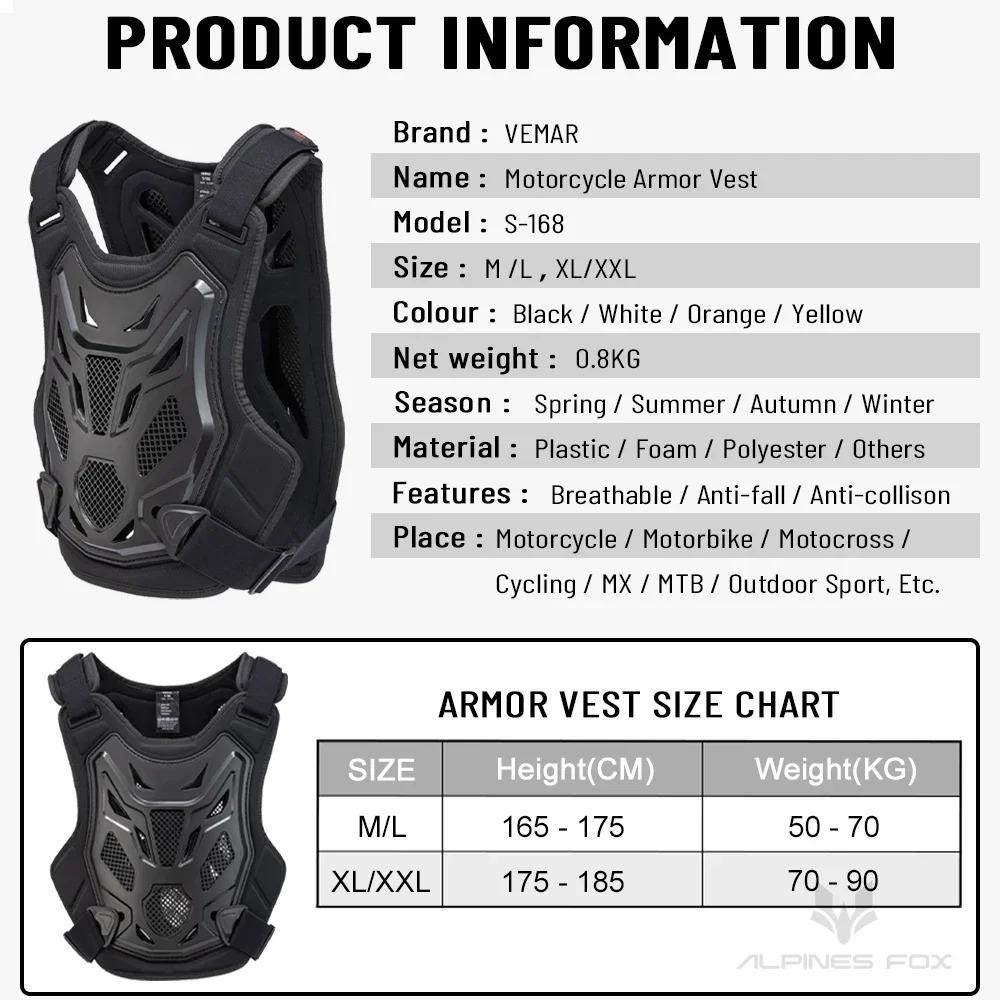 VEMAR Motorcycle Body Armor Vest Men Women Motocross Dirt Bike Back Chest Protector Motorbike Off-Road Outdoor Sport Protective Gear